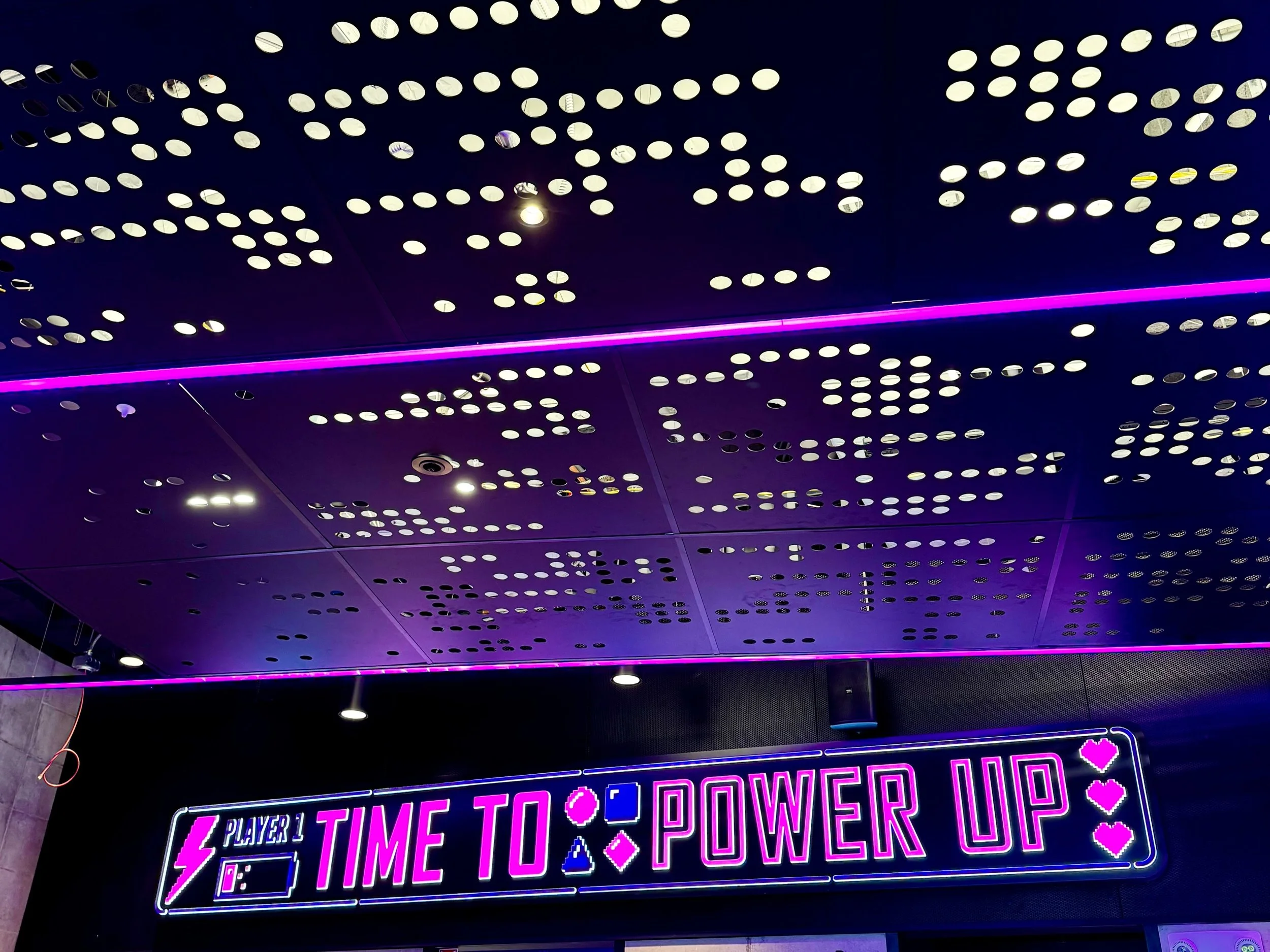 The LED lighting is another standout feature of the design, carefully programmed to enhance the space throughout the day. The lights stretch up one wall, across the ceiling, and down the back bar, shifting in vibrant settings that correspond with the time of day and sunset. This dynamic lighting creates an ever-evolving ambiance, amplifying the mood of the space and ensuring a captivating experience at all hours. As the lights change, it’s the perfect reminder: 'Time to Power Up' and dive into the adventure.